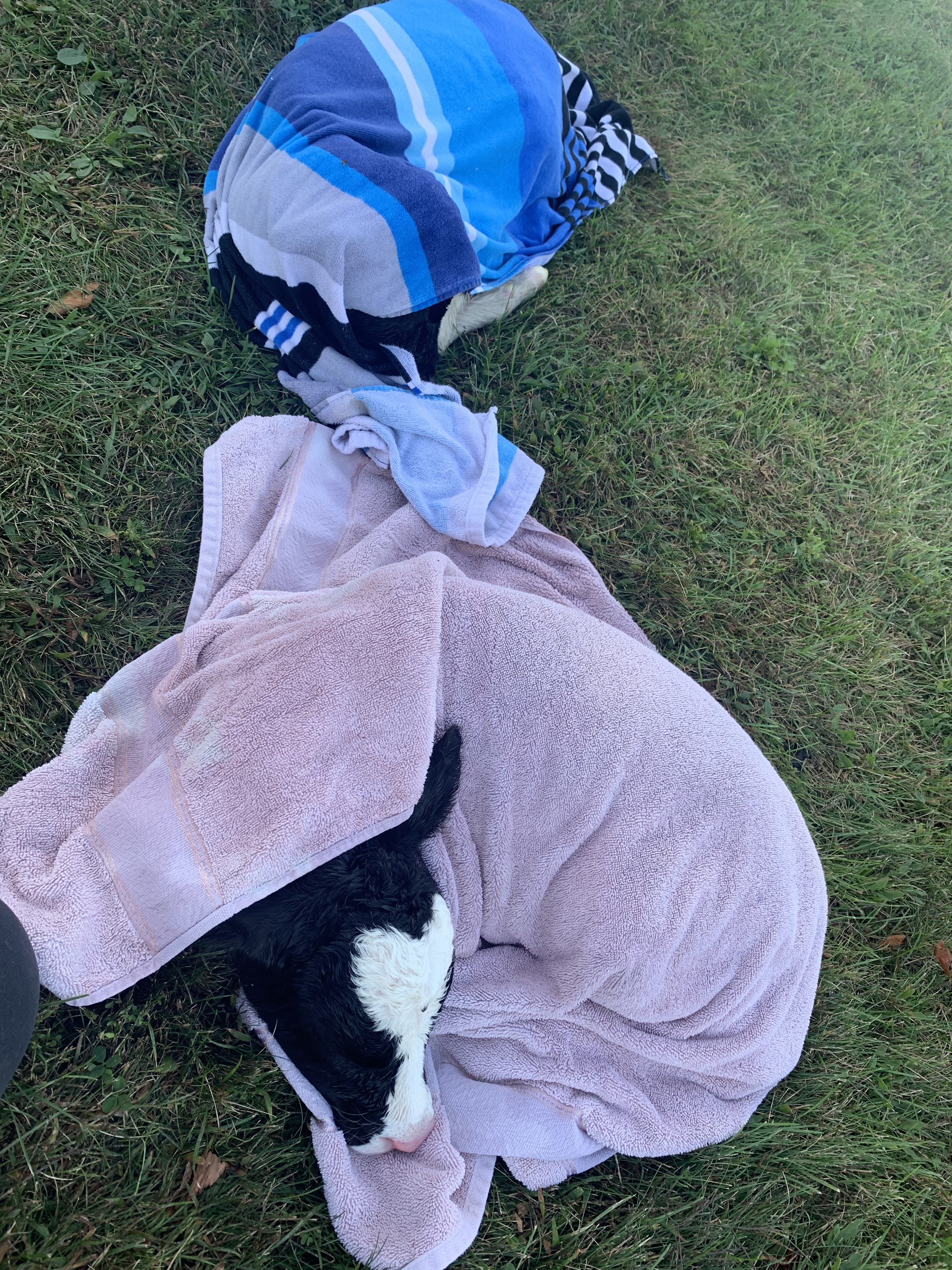 Max and Ruby are premature Holstein twins that were orphaned when their mother went into cardiac arrest. We took them home only a few hours after they were born to bathe and nurse them hoping they made it through the night. 4 weeks later these two are the highlight of our days and doing better than I could have expected. Caring for these two have been very similar to having twin babies… mix the formula, feed the formula, wash the bottles, fill the bottles… slobber and poop have become something to get excited about… yay they pooped solid! 😂